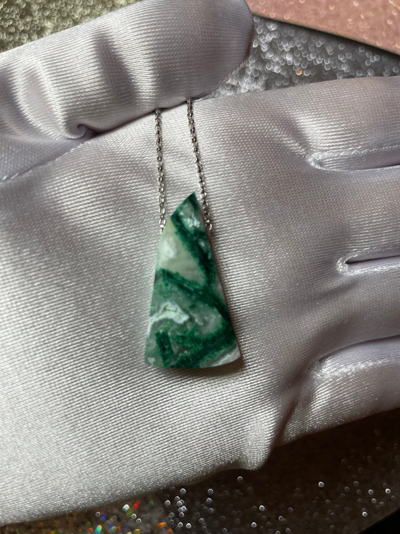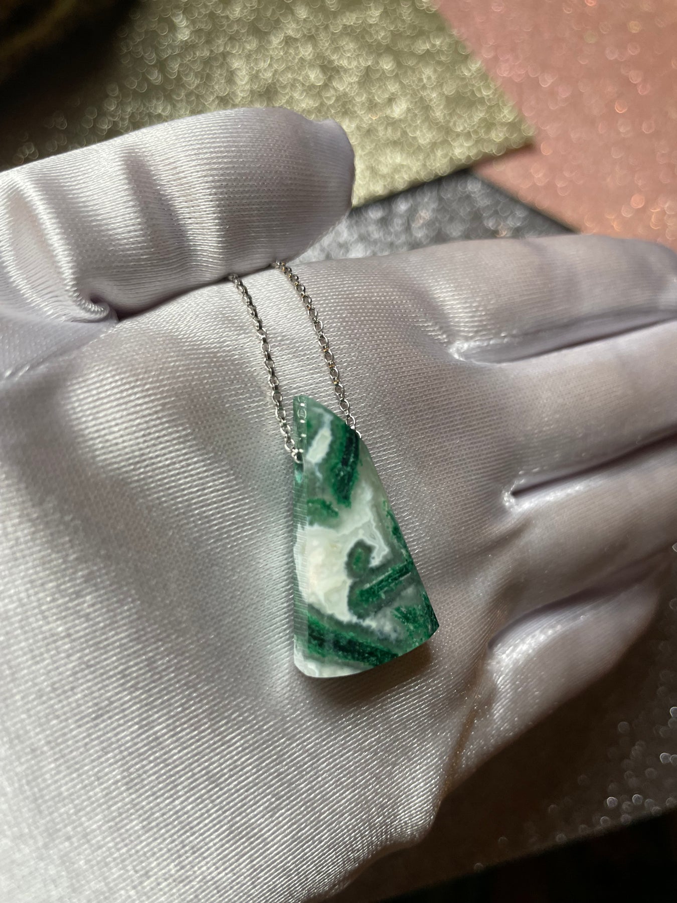 Malachite in White Agate Pendant (Rare)