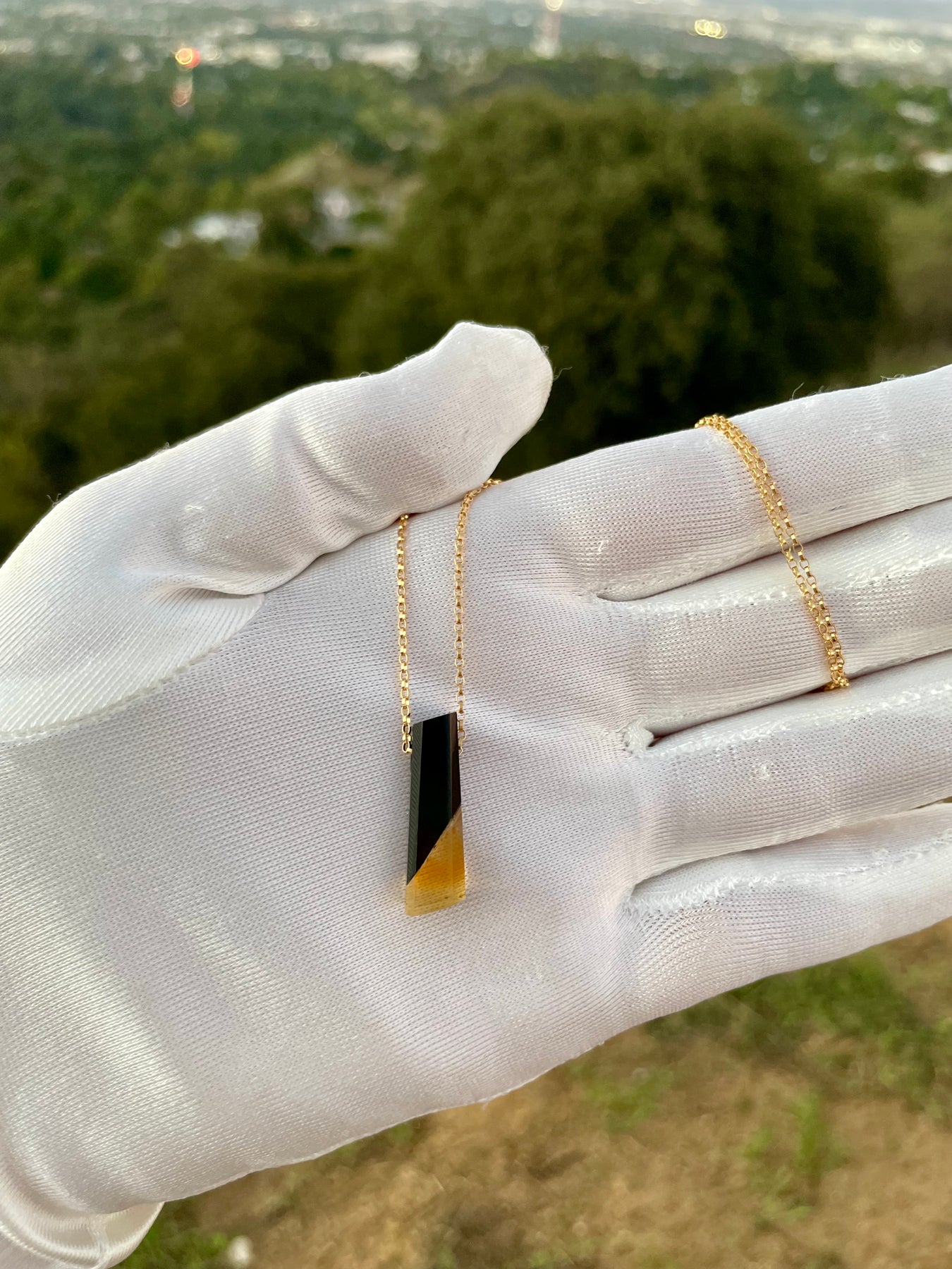 Black Jade & Citrine Intarsia Pendant
